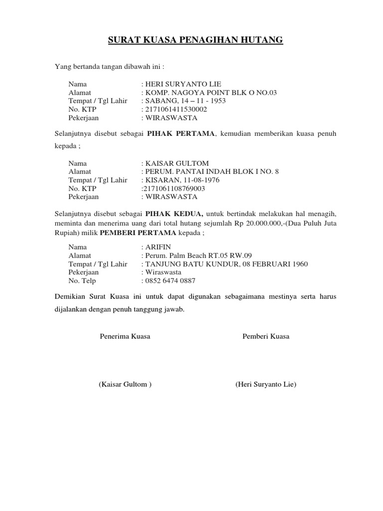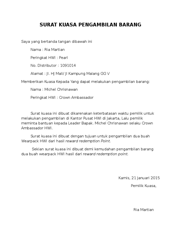 Contoh surat kuasa pengurusan perpanjangan stnk. Surat yang berisi tentang pelimpahan wewenang dari seseorang atau pejabat tertentu kepada seseorang atau pejabat lain yang bisa mewakili pihak yang memberikan wewenang. Sekedar berbagi pelajaran melalui vidiosangatlah bosan rasnya jika harus belajar mengaplikasikan dengan membaca saja. By hasrul28 in types > business/law, surat, and surat kuasa. Hal ini karena dilihat dari fungsi dan tujuannya yang sangat vital serta patut dipertanggungjawabkan. Contoh surat kuasa yang benar dan turorial lengkap cara membuatnya. Selain buku tabungan, nasabah akan menerima kartu atm untuk memudahkannya dalam mengambil uang tanpa harus mengantri di bank terlebih dahulu. Surat kuasa adalah surat yang isinya mengenai pemberian wewenang atau kuasa dari seseorang atau satu pihak kepada orang lain atau pihak lain untuk melakukan suatu hal seperti yang tertera dalam isi surat. Setelah anda mengetahui poin poin yang harus dicantumkan di ngomongin tentang contoh surat kuasa jual beli tanah malaysia merupakan hal yang cukup menarik terlebih untuk anda yang memang sedang. Surat kuasa ini harus ditulis dengan bahasa yang jelas, singkat dan mudah dipahami sehingga orang yang menerima kuasa mengerti maksudnya. Contoh surat kuasa dengan format yang baik dan benar. Surat kuasa adalah surat pemberian kuasa kepada pihak yang ditunjuk untuk bisa bertindak atas nama si pemberi kuasa. Jika masih ada yang belum, pada kesempatan kali ini kita akan mengulas lebih dalam lagi mengenai surat kuasa.